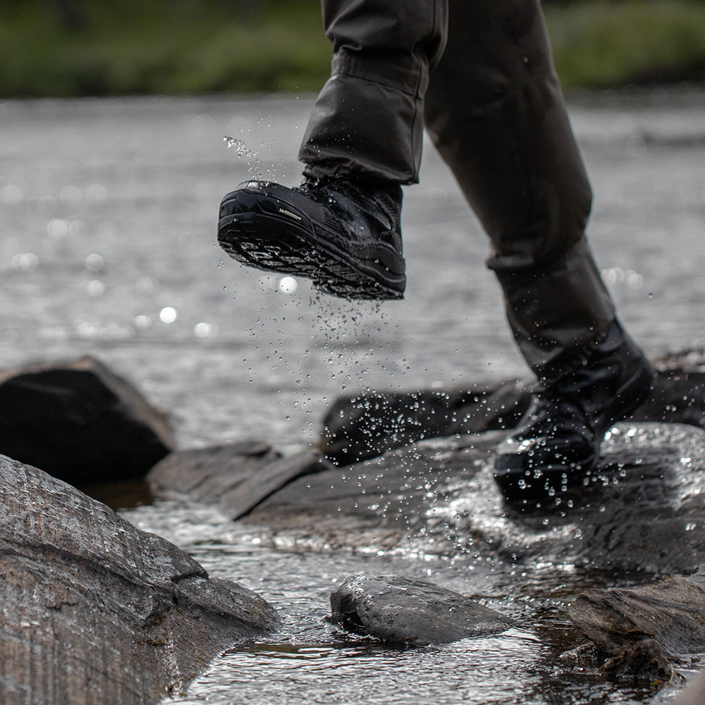 Der Musta Michelin ist ein moderner, leichter Watschuh mit TPU-verstärktem Obermaterial aus ballistischem Polyester. Der TPU-Druck in bestimmten Bereichen sorgt für eine gute Verschleißfestigkeit, ohne den Schuh zu sperrig und schwer zu machen. Der Schuh ist einfach anzuziehen und lässt sich leicht anziehen. Die EVA-Zwischensohle und der vordere Stoßfänger der Michelin-Sohle sind mit dem Obermaterial des Schuhs vernäht.